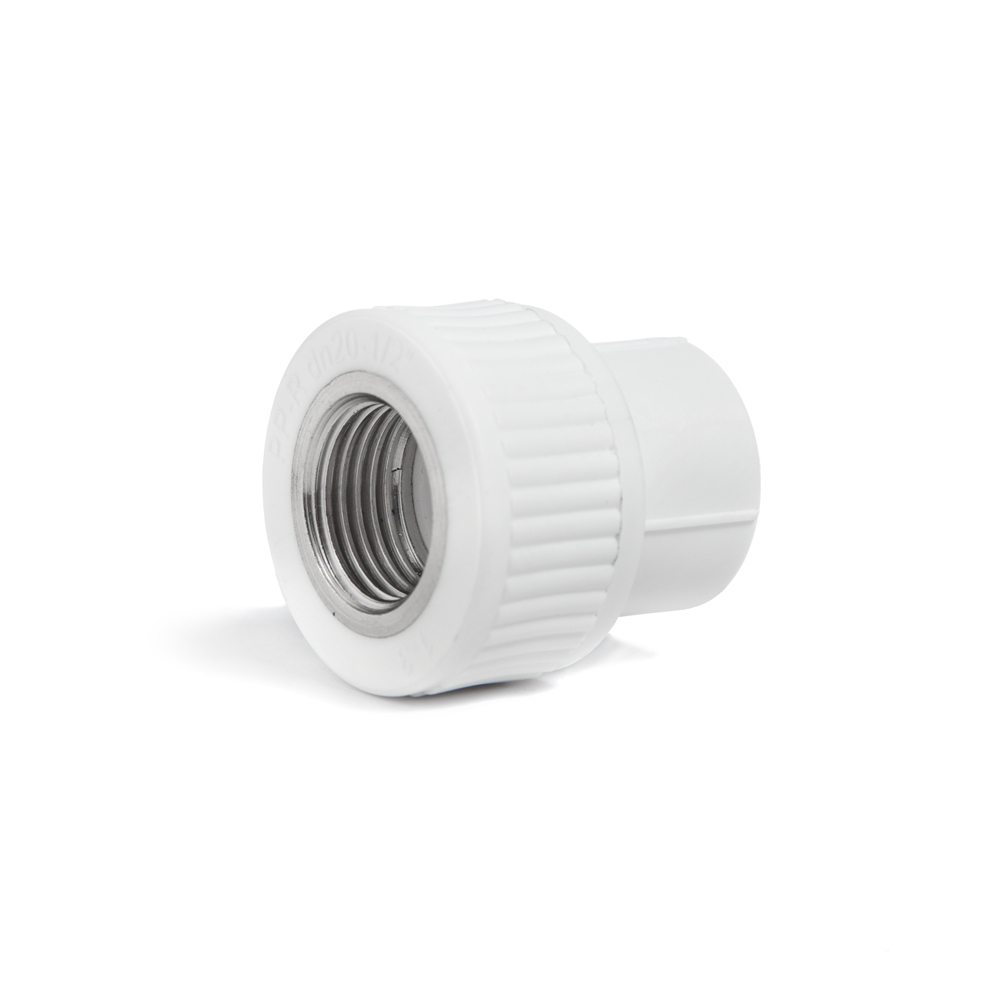 Муфта переходная комбинированная из полипропилена с внутренней резьбой из латуни с одной стороны имеет раструбное термофузионное соединение под полипропиленовую трубу, а с другой стороны фитинга находится внутреннее резьбовое соединение. Муфты переходные комбинированные изготавливаются диаметрами от 20 мм до 63 мм по пластику.