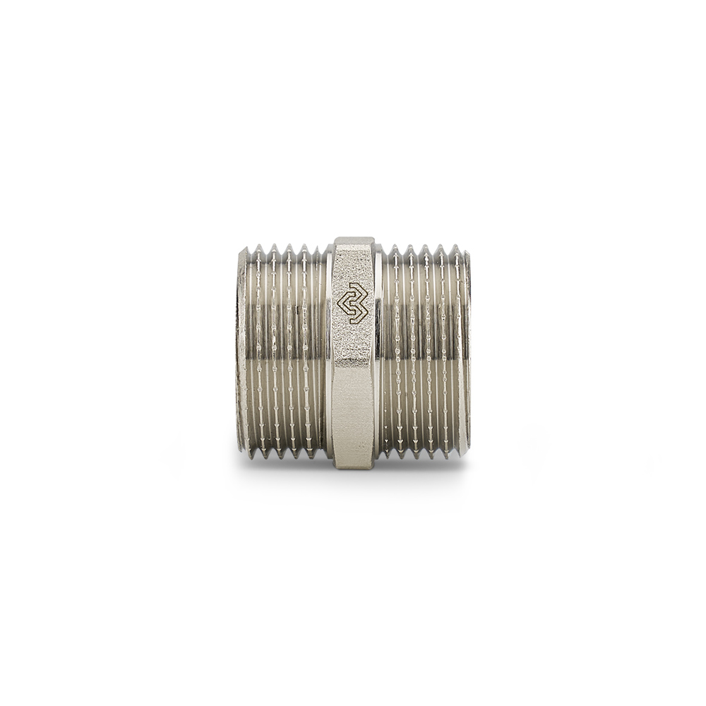 Ниппель равносторонний Varmega, относится к резьбовым фитингам и предназначен для соединения резьбовых элементов на трубопроводах холодного (в том числе, питьевого) и горячего водоснабжения, отопления, сжатого воздуха и на технологических трубопроводах, транспортирующих газы и жидкости, не агрессивные к материалу соединителей.