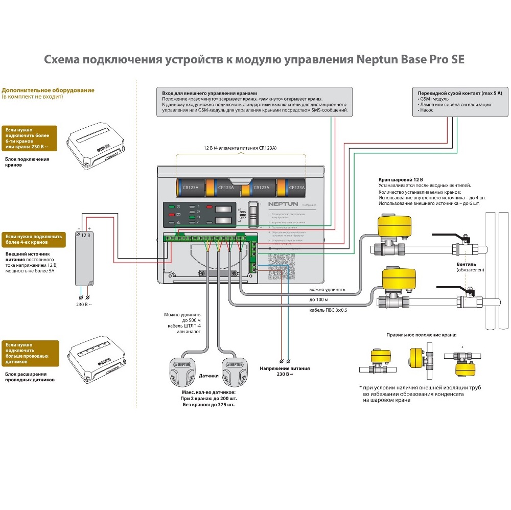 Комплект защиты от протечки воды NEPTUN SE BASE PRO предназначен для обнаружения и локализации протечек воды в системах водоснабжения. Neptun Base Pro — это очень надежное и функциональное устройство имеющее резервное питание на случай пропадания электричества.